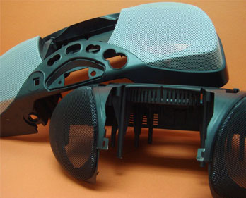 2、机壳加工:喇叭网、螺丝帽及螺丝杆植入等